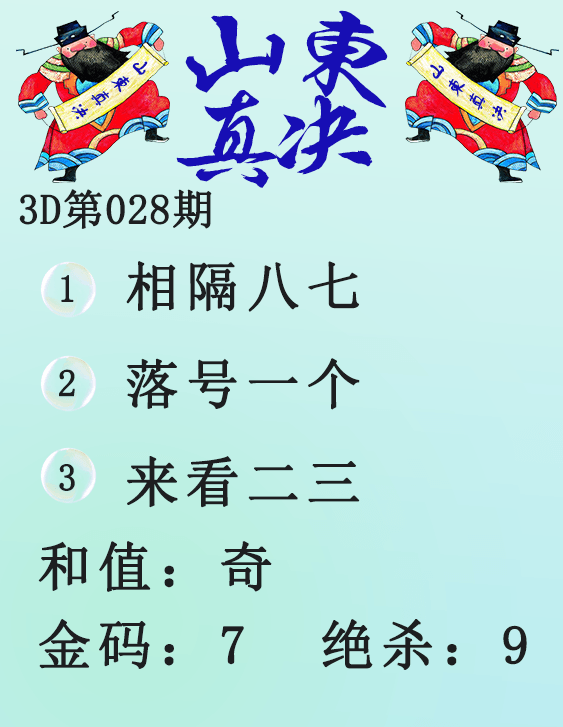 • 26028期: 福彩3D财神精选胆码杀码