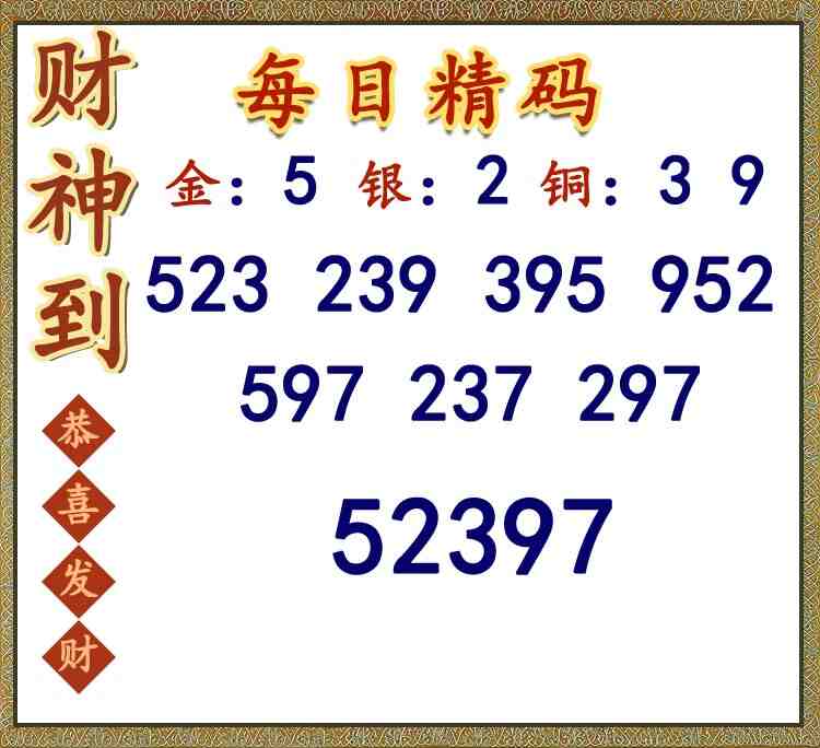 • 26062期: 福彩3D财神精选胆码杀码