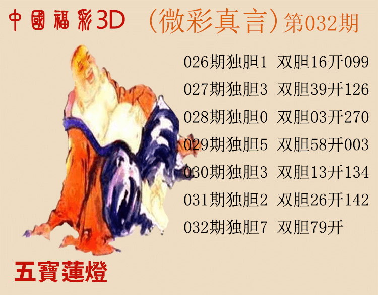• 26065期: 福彩3D财神精选胆码杀码