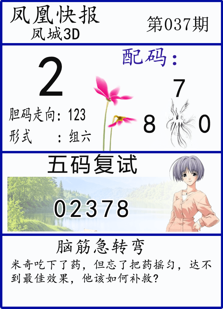 • 26037期: 福彩3D财神精选胆码杀码