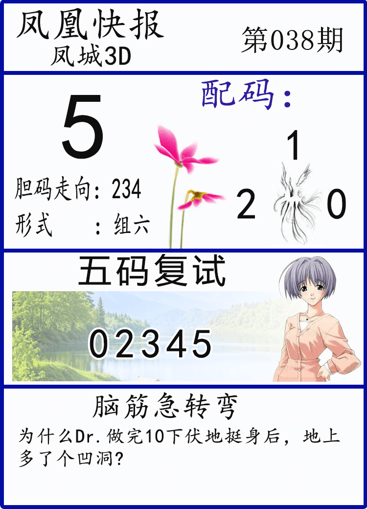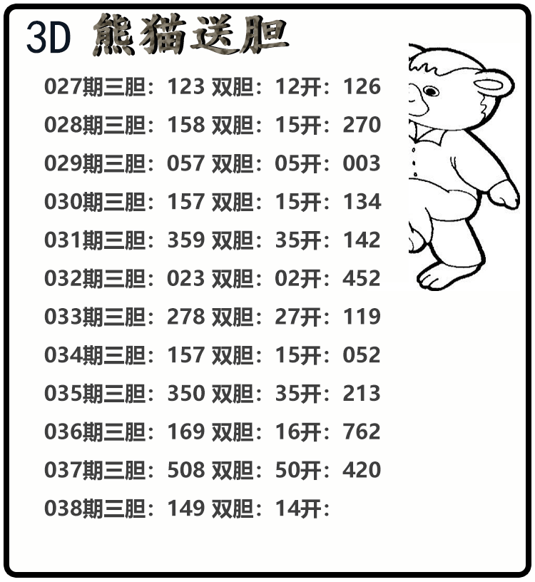 • 26038期: 福彩3D财神精选胆码杀码