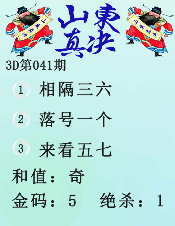 • 26065期: 福彩3D财神精选胆码杀码