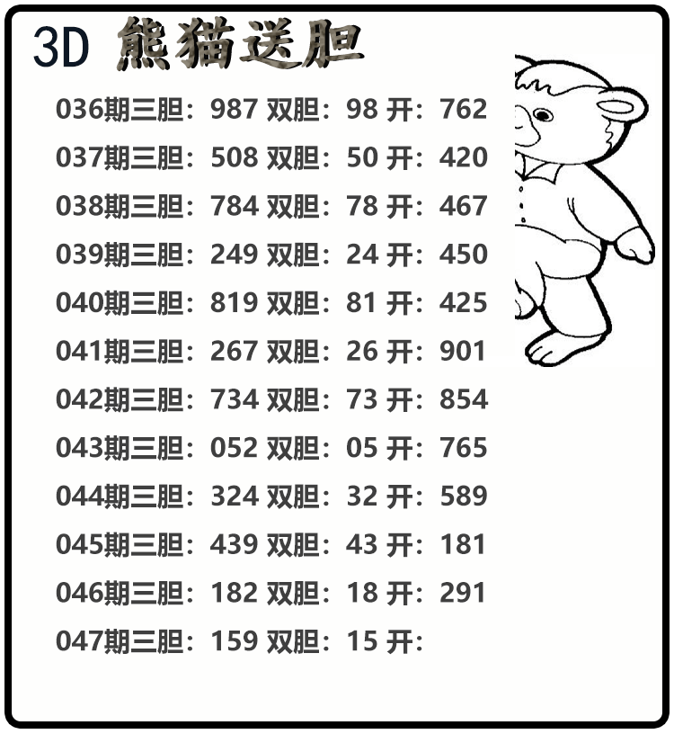 • 3D杀码 3D胆码 3D预测 3D字谜 3D技巧 一句定3码 今日说彩 3D晚秋和值谜 马后炮解太湖 3D太湖钓叟 3D试机号后分析 于海滨一语定胆 3D妖胆图 特邀专家 3D藏机图 3D杀号图 3D统计 3D术语 3D龙胆虎杀 鬼六神算 精华布衣 太湖精品 丹东全图 天中全图 三毛全图 村长全图 大兵全图 佐罗真图 九宝寻码 财神全图 北盟天机 白老全图 红黄蓝报 蝴蝶彩图
