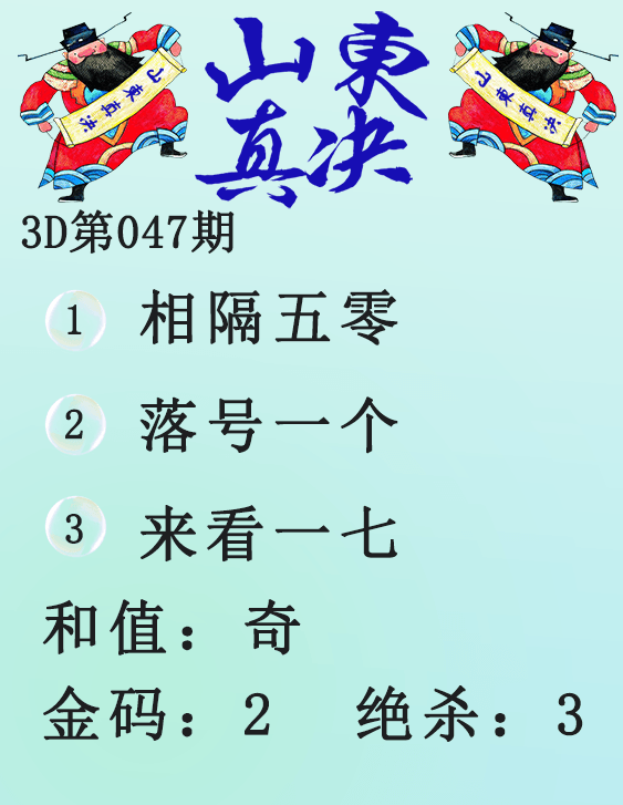 • 26065期: 福彩3D财神精选胆码杀码