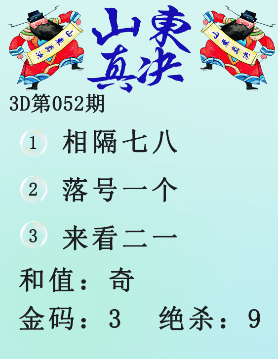 • 26065期: 福彩3D财神精选胆码杀码