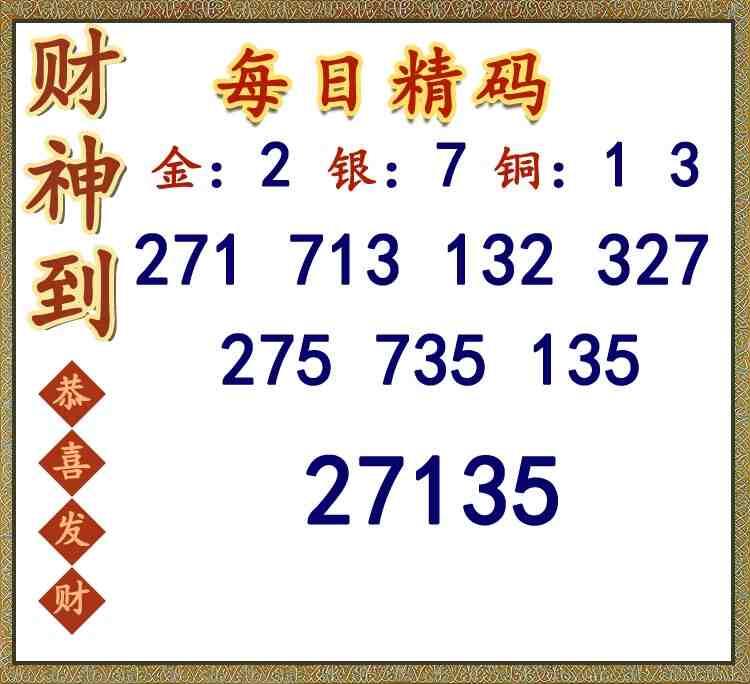 • 26065期: 福彩3D财神精选胆码杀码