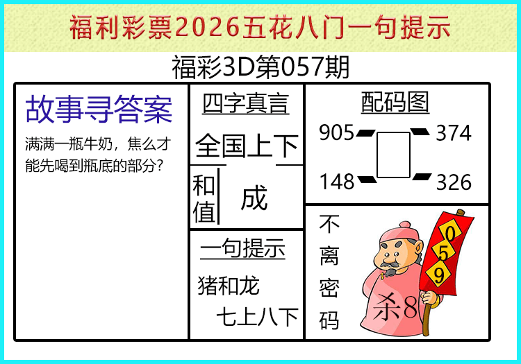 • 26065期: 福彩3D财神精选胆码杀码