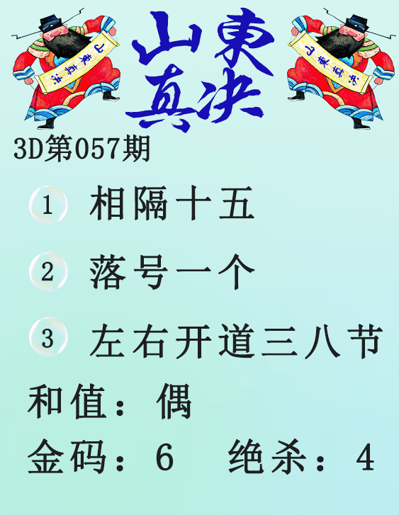 • 26065期: 福彩3D财神精选胆码杀码