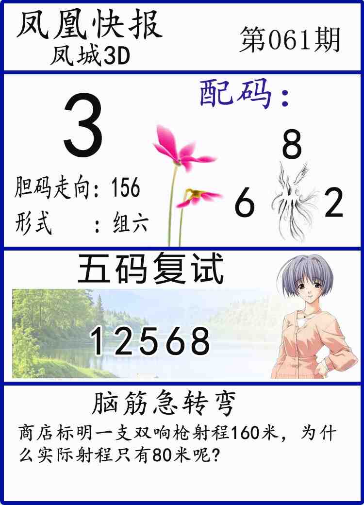 • 26061期: 福彩3D财神精选胆码杀码