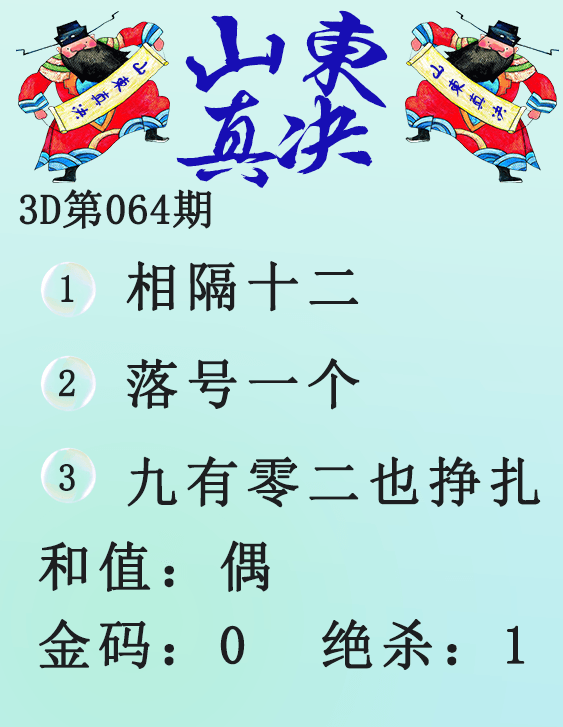 • 26064期: 福彩3D财神精选胆码杀码