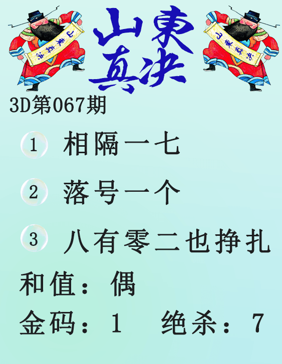• 26071期: 福彩3D财神精选胆码杀码