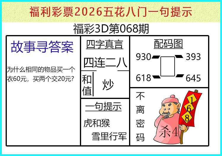 • 26070期: 福彩3D财神精选胆码杀码