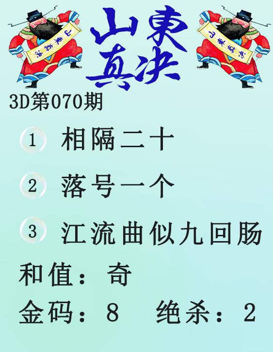 • 26071期: 福彩3D财神精选胆码杀码