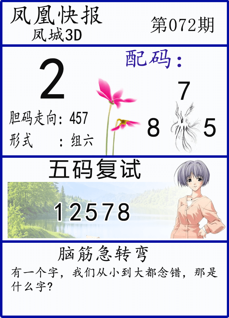 • 3D杀码 3D胆码 3D预测 3D字谜 3D技巧 一句定3码 今日说彩 3D晚秋和值谜 马后炮解太湖 3D太湖钓叟 3D试机号后分析 于海滨一语定胆 3D妖胆图 特邀专家 3D藏机图 3D杀号图 3D统计 3D术语 3D龙胆虎杀 鬼六神算 精华布衣 太湖精品 丹东全图 天中全图 三毛全图 村长全图 大兵全图 佐罗真图 九宝寻码 财神全图 北盟天机 白老全图 红黄蓝报 蝴蝶彩图