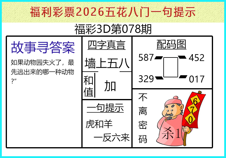 • 26078期: 福彩3D财神精选胆码杀码