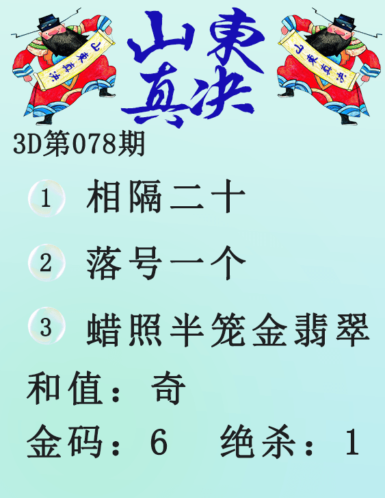 • 26078期: 福彩3D财神精选胆码杀码