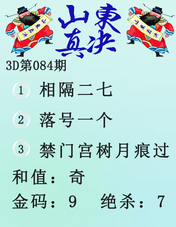 • 26083期: 福彩3D财神精选胆码杀码