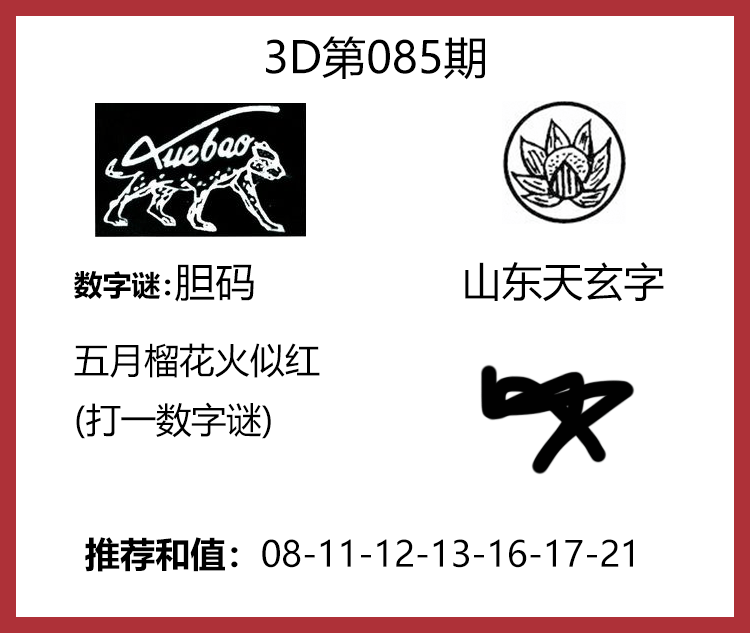 • 26085期: 福彩3D财神精选胆码杀码