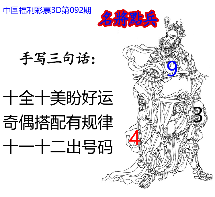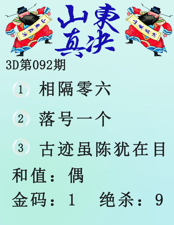 • 26092期: 福彩3D财神精选胆码杀码