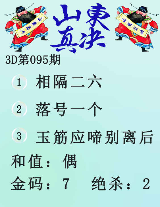 • 26095期: 福彩3D财神精选胆码杀码