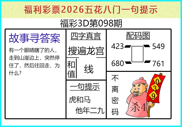 • 26098期: 福彩3D财神精选胆码杀码