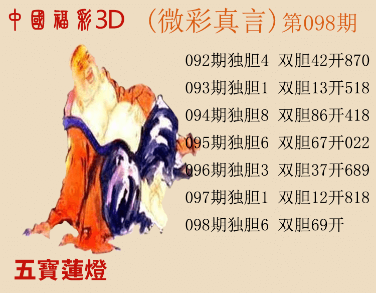• 26095期: 福彩3D财神精选胆码杀码