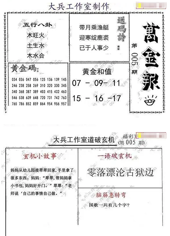 • 26005期: 大兵福彩3D黄金报图版