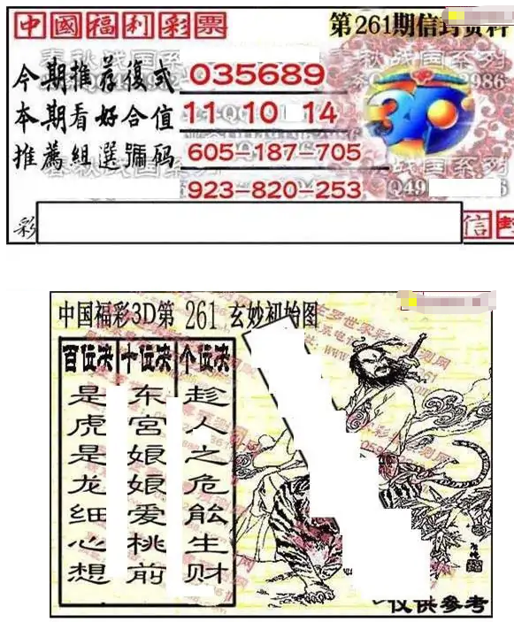 • 福彩3D 25261期佐罗图一掌经预测图