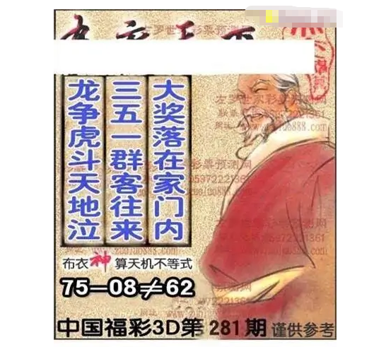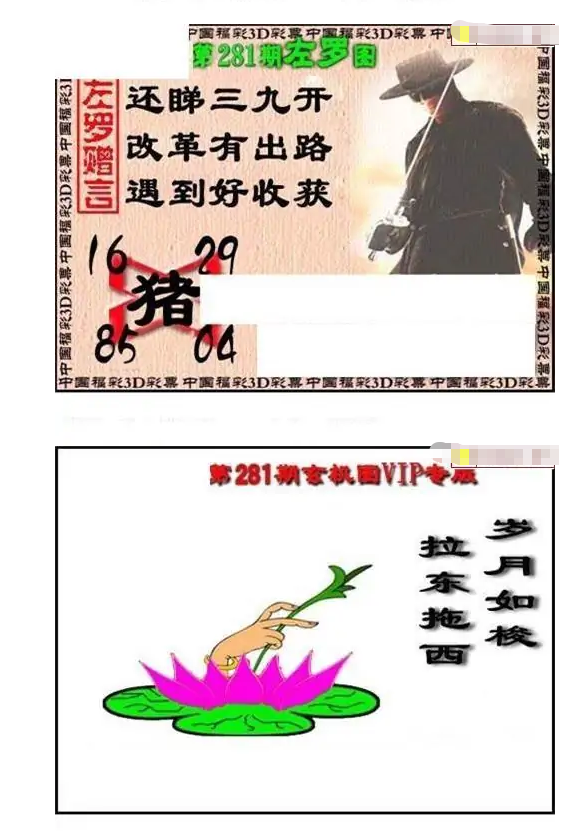 • 福彩3D 25281期佐罗图一掌经预测图