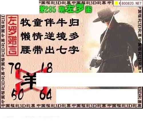 • 福彩3D 25285期佐罗图一掌经预测图