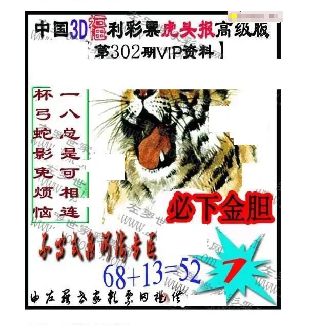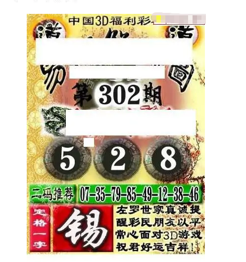 • 福彩3D 25302期佐罗图一掌经预测图