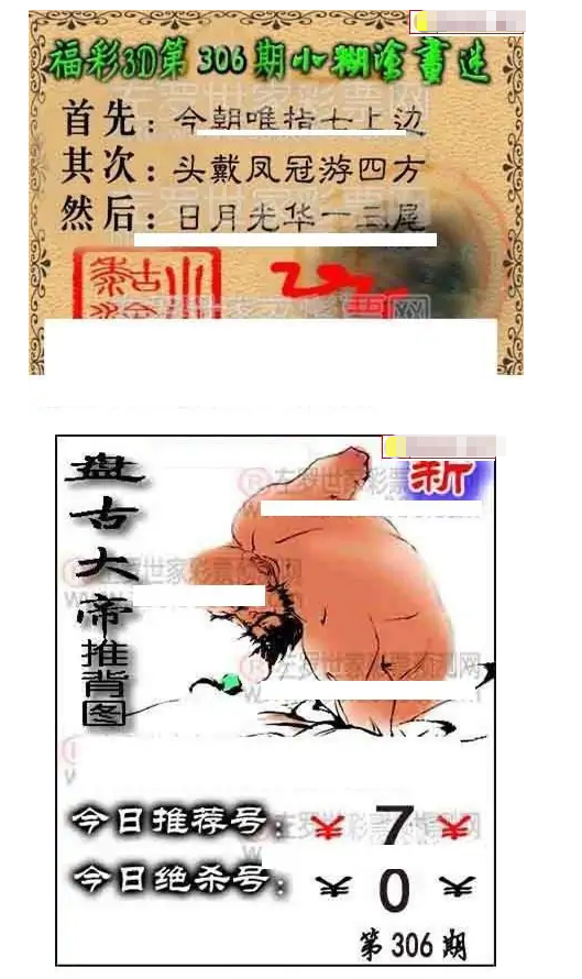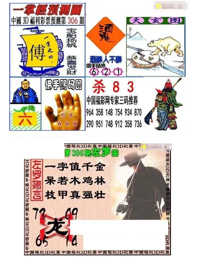• 福彩3D 25306期佐罗图一掌经预测图