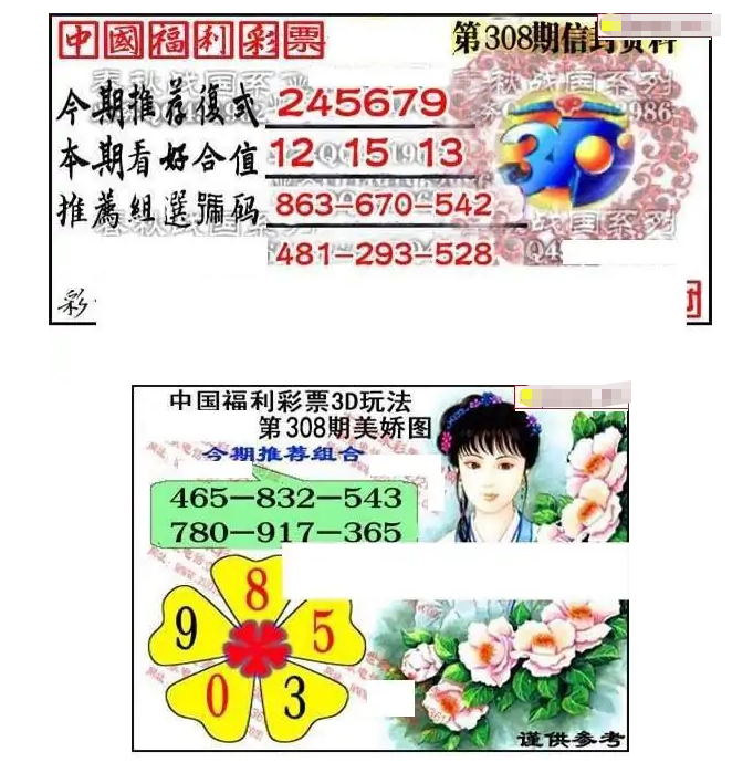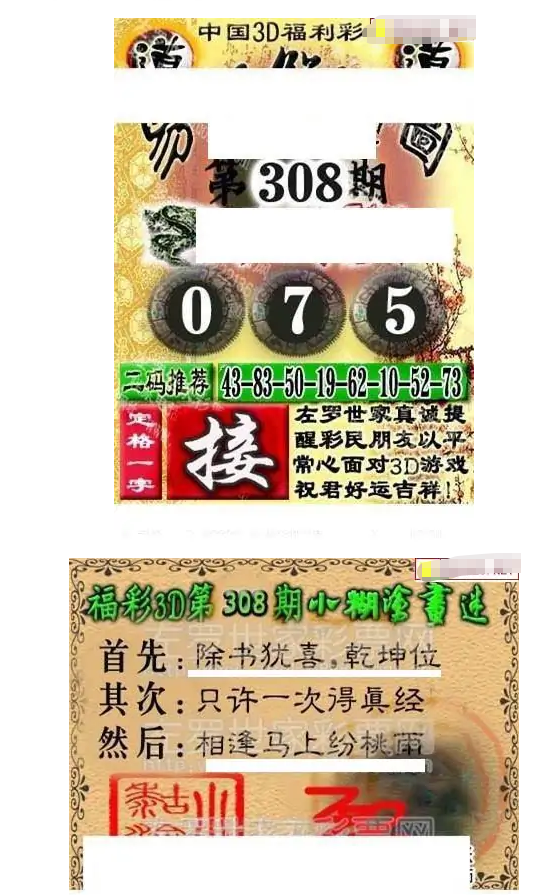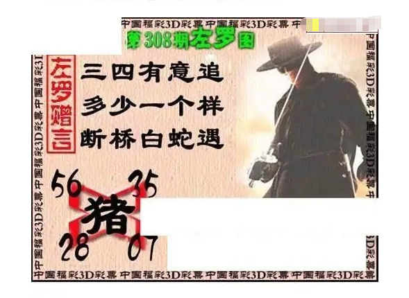 • 福彩3D 25308期佐罗图一掌经预测图