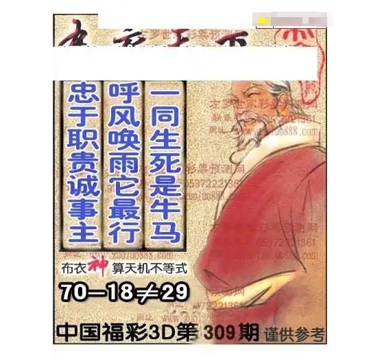 • 福彩3D 25309期佐罗图一掌经预测图