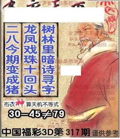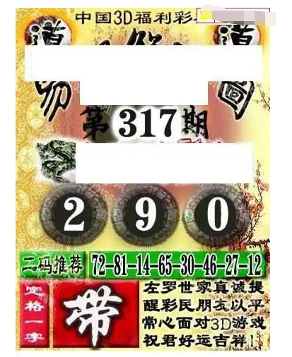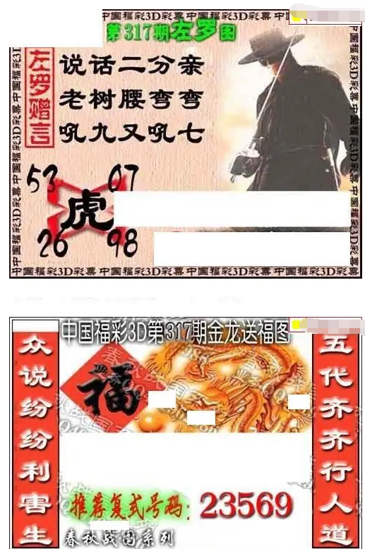 • 福彩3D 25317期佐罗图一掌经预测图