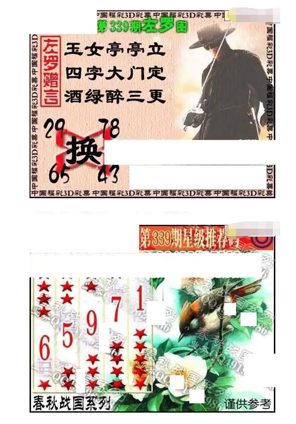 • 福彩3D 25339期佐罗图一掌经预测图