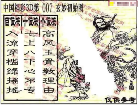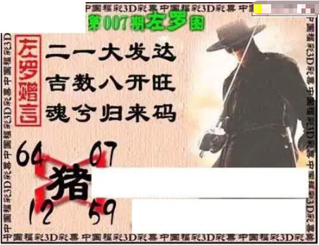 • 福彩3D 26007期佐罗图一掌经预测图