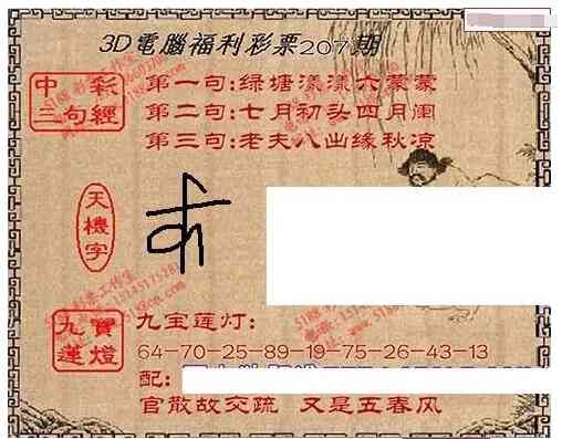 • 九宝图25207期福彩3D寻码图
