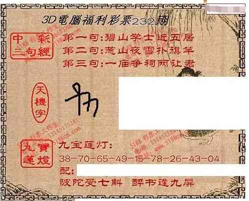 • 九宝图25232期福彩3D寻码图