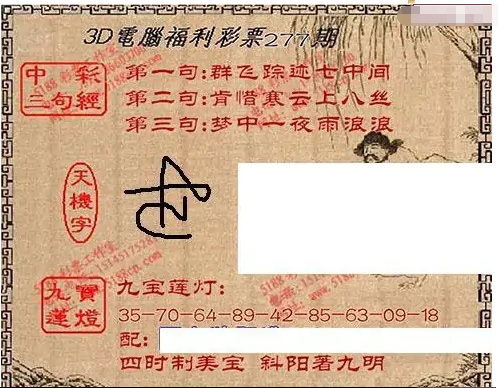 • 九宝图25277期福彩3D寻码图