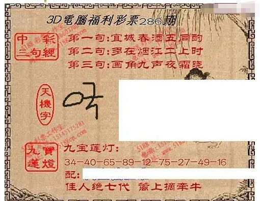 • 九宝图25286期福彩3D寻码图