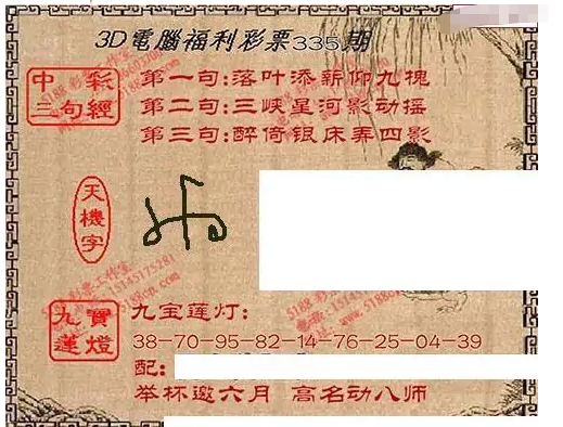 • 九宝图25335期福彩3D寻码图
