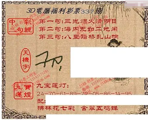 • 九宝图25337期福彩3D寻码图