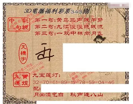 • 九宝图26023期福彩3D寻码图