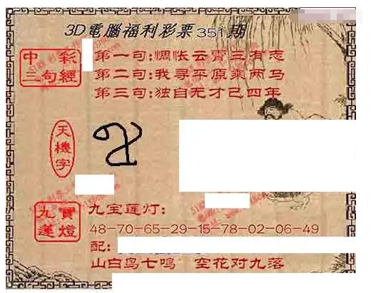 • 九宝图25351期福彩3D寻码图
