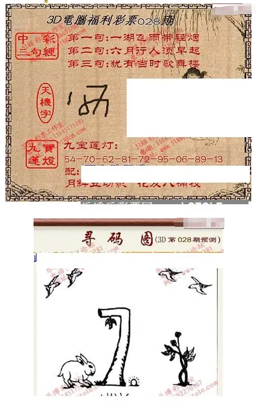 • 九宝图26028期福彩3D寻码图