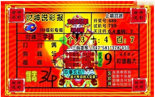 • 26025期: 财神说彩3D全套图版