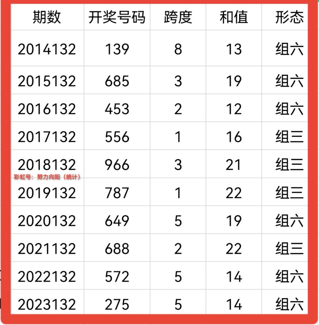 一:依据往年十期号码,我们先来分析三位出号范围以及跨度和值范围: