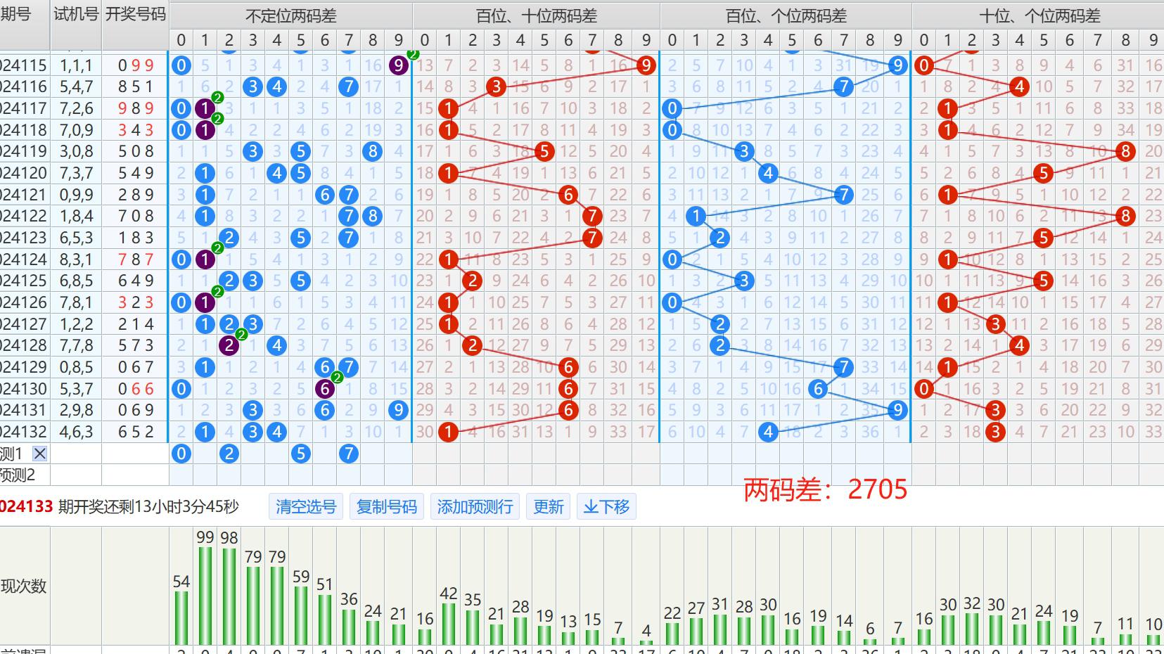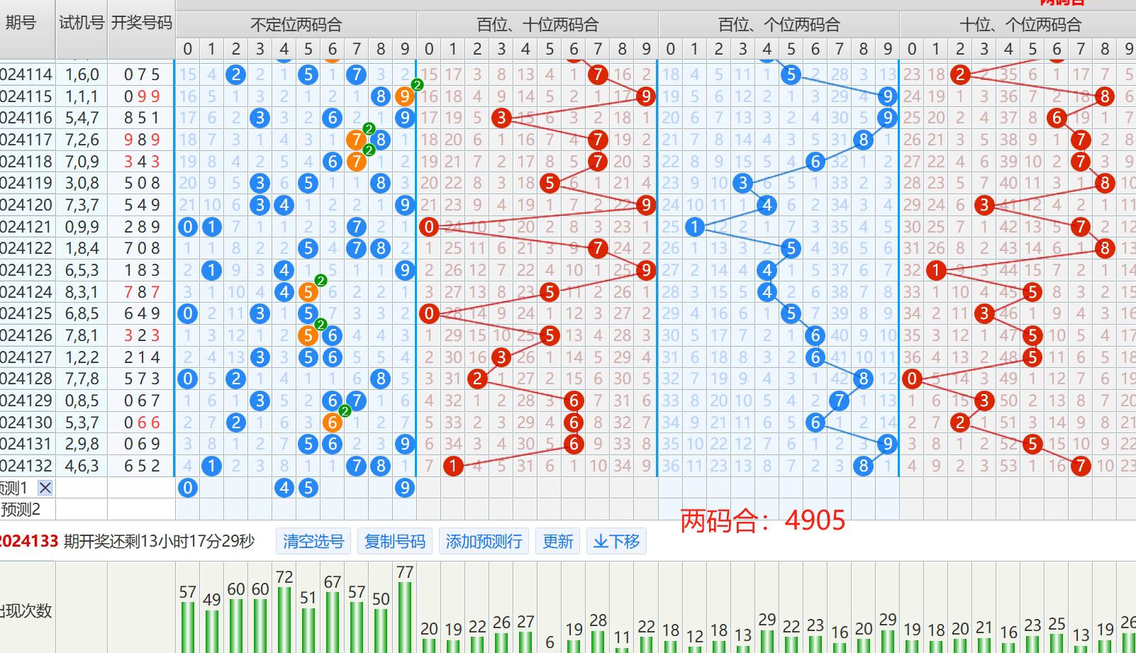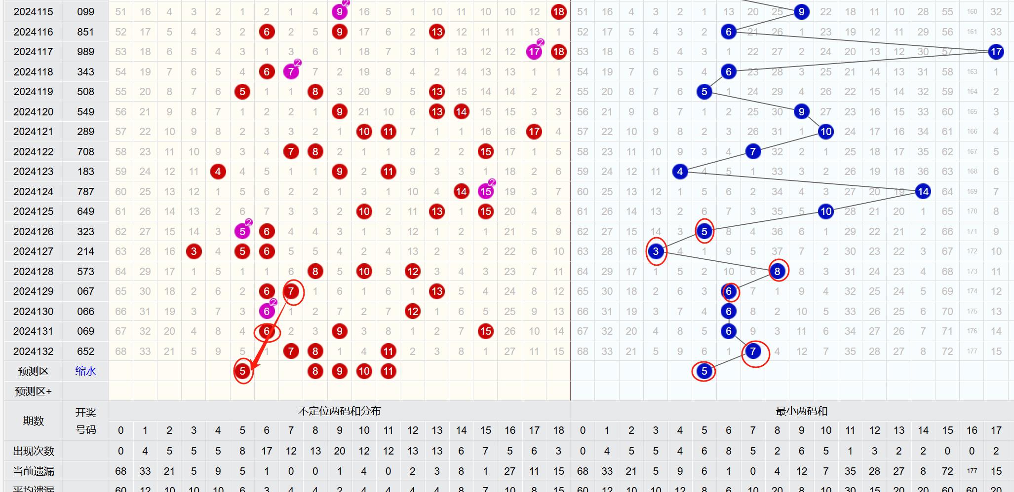 看两码走势图,本期重点防两码和5 8 9 10 11 最小两码和5