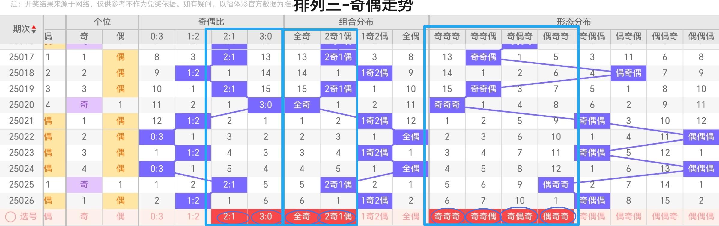 奇偶比分析:上期开出1:2形态,我们可以考虑在本期大胆的杀掉奇偶比1:2,本期重点奇偶比是2:1,防奇偶比3:0。
